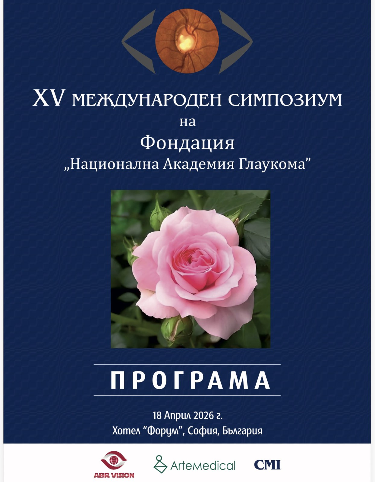 Програма на XV Международен Симпозиум на Фондация „Национална Академия Глаукома”, 18 Април (Събота) 2026 г., Хотел „Форум”, София