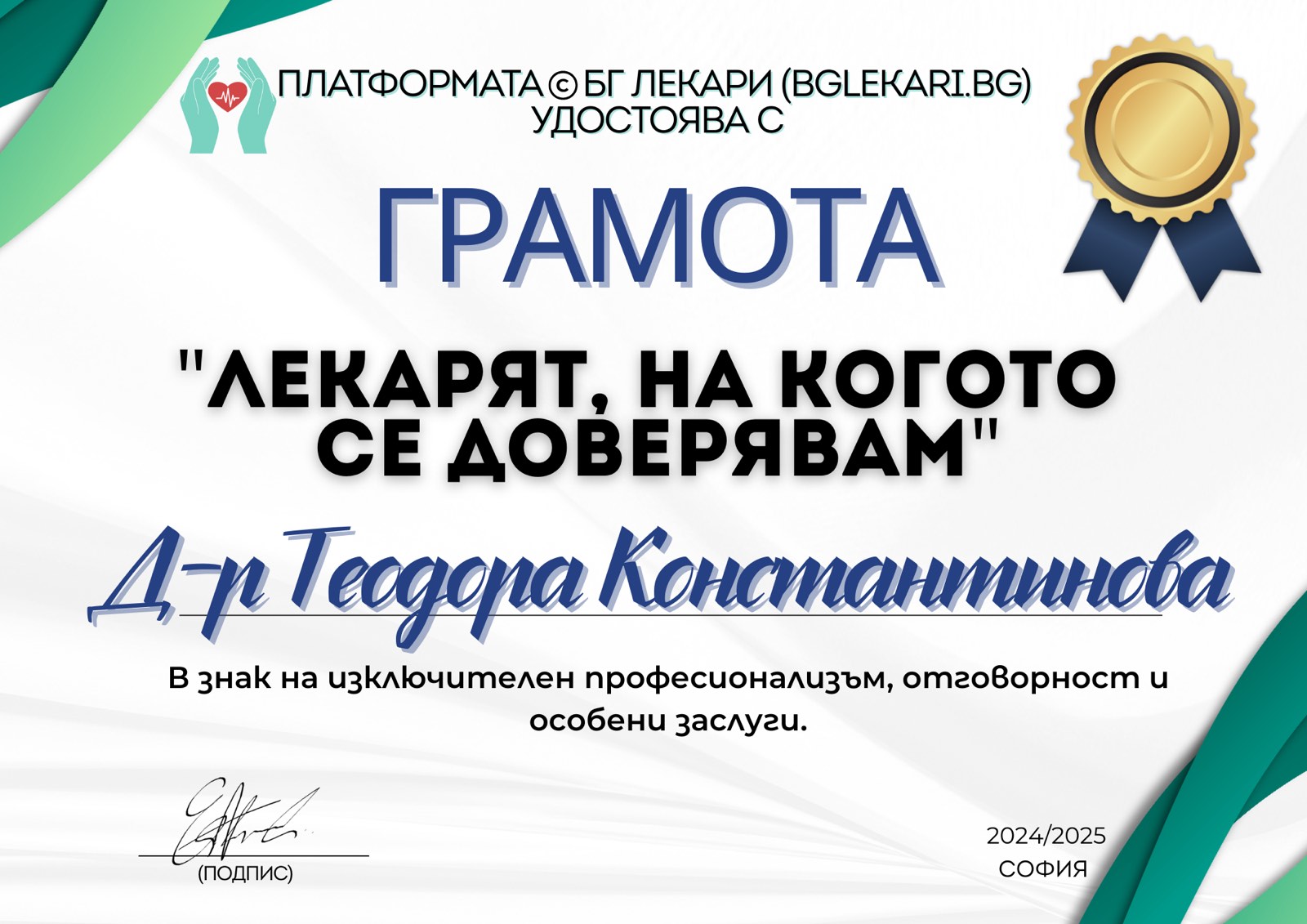 Професионална квалификация: Здравен мениджмънт в Нов Български Университет- София.
